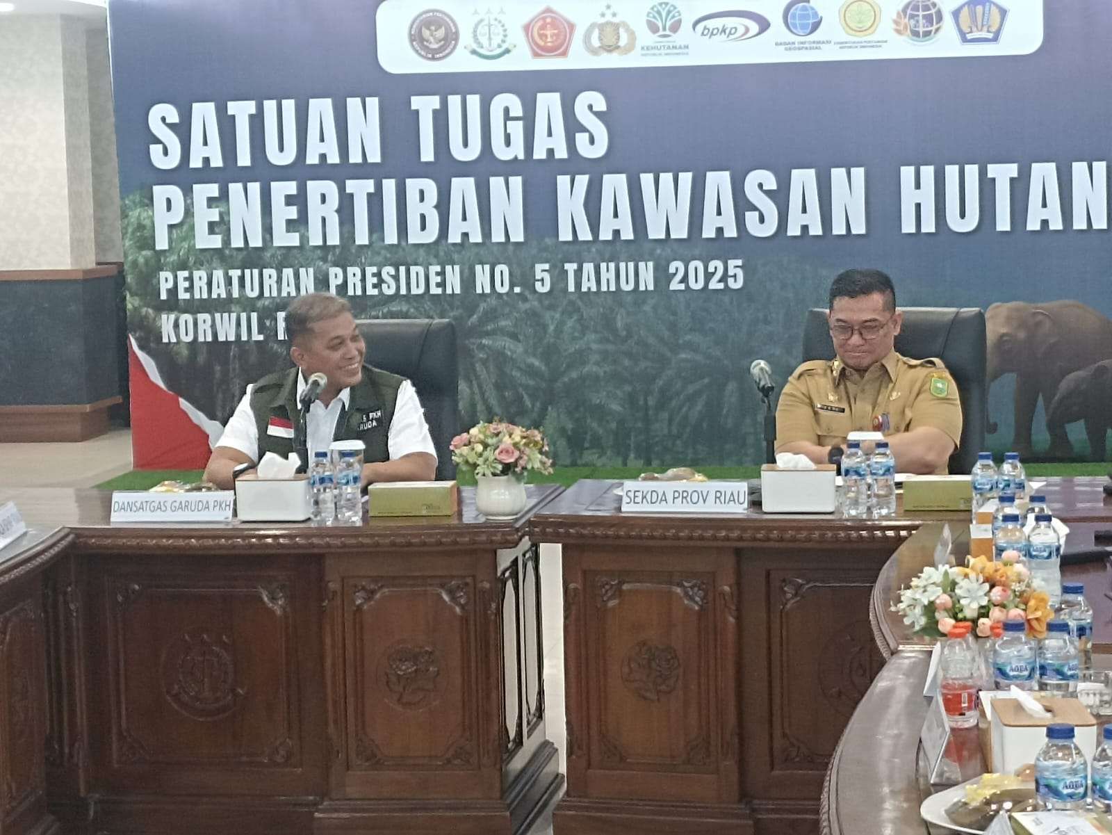 Komandan Satgas Garuda Penertiban Kawasan Hutan (PKH), Mayjen TNI Dody Triwinarto, memberikan penjelasan terkait lahan pengganti untuk masyarakat yang tinggal di dalam kawasan TNTN.