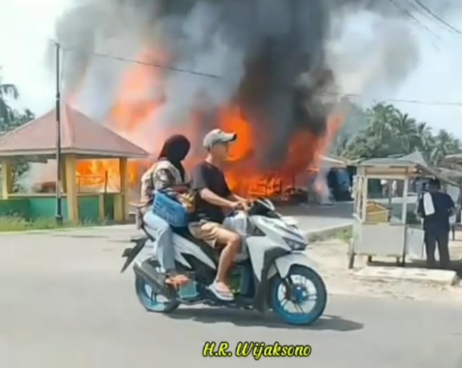 KEMPAS, TNN – Kebakaran hebat melanda kawasan RT 14 RW 04 Desa Danau Pulai Indah, Kecamatan Kempas, Kabupaten Indragiri Hilir, Riau, pada Jumat (18/7/2025) sekitar pukul 14.00 WIB. Enam kios semi permanen hangus terbakar dalam insiden tersebut.