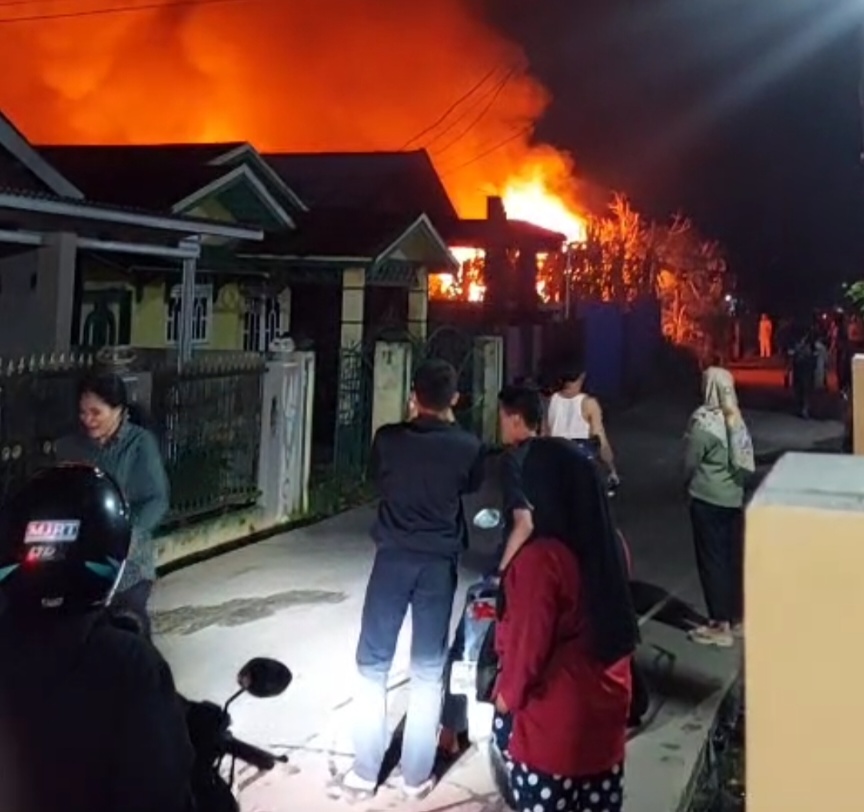 TEMBILAHAN, TNN – Kebakaran hebat terjadi di Jalan Kayu Jati Gang Bismillah, RT 02 RW 11 Kelurahan Tembilahan Hulu, pada pukul 20.30 WIB. Tiga rumah permanen hangus terbakar dalam kejadian ini, dan satu orang meninggal dunia.