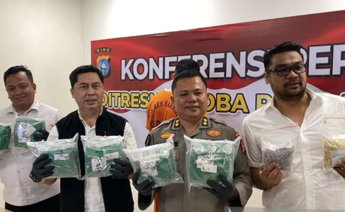 Wakil Direktur Reserse Narkoba Polda Riau AKBP Nandang Lirama saat pengungkapan kasus, Rabu, menjelaskan DK membawa 13,10 kilogram sabu dan 6.662 butir ekstasi yang dikendalikan oleh seseorang berinisial S, yang saat ini masih dalam penyelidikan.