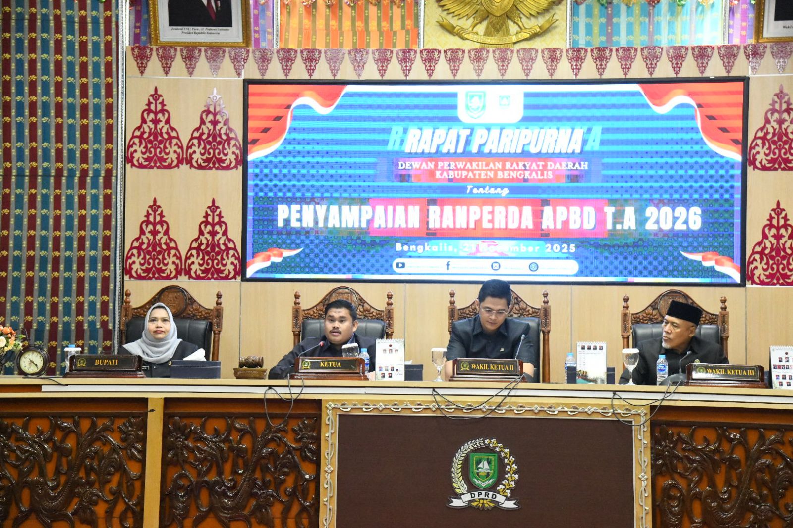 “Ranperda APBD Kabupaten Bengkalis Tahun Anggaran 2026 yang kami sampaikan ini, merupakan satu kesatuan yang terdiri atas rencana pendapatan, rencana belanja dan rencana pembiayaan daerah,” ujar Bupati Kasmarni.