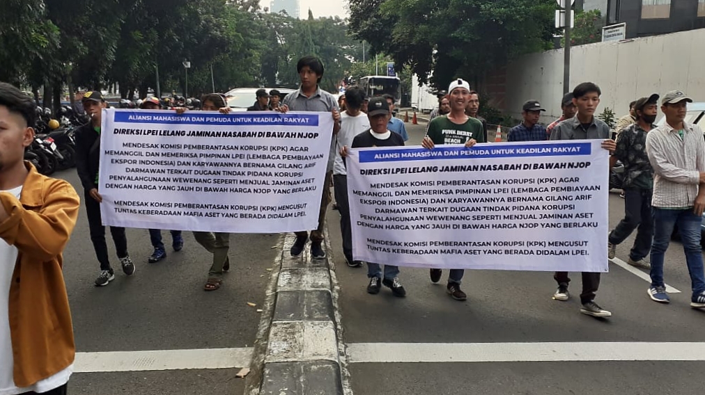 Jakarta – Aliansi Mahasiswa dan Pemuda untuk Keadilan resmi melaporkan dugaan tindak pidana korupsi yang melibatkan pimpinan dan karyawan Lembaga Pembiayaan Ekspor Indonesia (LPEI) kepada Komisi Pemberantasan Korupsi (KPK). Laporan ini diterima langsung oleh Direktur Pelayanan dan Pengaduan Masyarakat KPK di kantor pusat mereka yang berlokasi di Jalan Kuningan Persada, Setiabudi, Jakarta Selatan. Jumat (31/5).