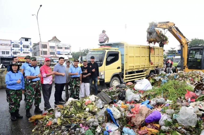 Kolaborasi antara DLHK, Pangkalan TNI AU Roesmin Nurjadin dan warga ini diwujudkan dalam kegiatan gotong royong Bersama membersihakan Kawasan Pasar Pagi Arengka dan sekitarnya.