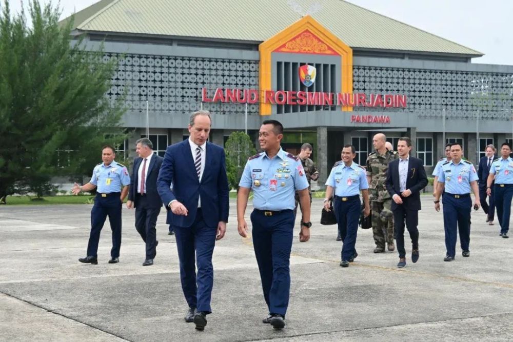 PEKANBARU, TNN – Duta Besar Prancis untuk Indonesia Fabien Penone, tinjau Pangkalan Udara Roesmin Nurjadin (Lanud Rsn) di Pekanbaru. Kehadiran Duta Besar Prancis ini untuk melakukan pengecekan langsung kesiapan fasilitas pendukung jelang kedatangan pesawat tempur Rafale.