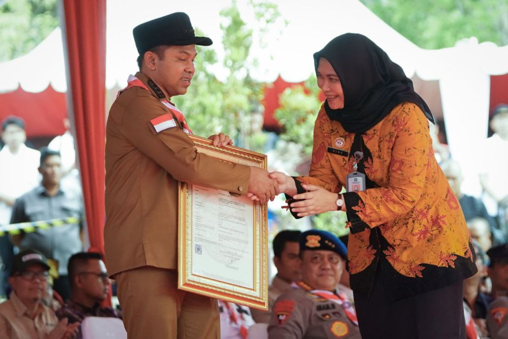 Piagam tersebut diserahkan oleh Kepala Divisi Peraturan Perundang-undangan dan Pembinaan Hukum Kanwil Kementerian Hukum Riau, Dina Resmalita kepada Gubri Abdul Wahid dalam rangkaian kegiatan Jambore Karhutla 2025. Bertempat di Taman Hutan Raya (Tahura) Sultan Syarif Hasyim, Kabupaten Siak, Riau, pada Jumat (25/4/2025).