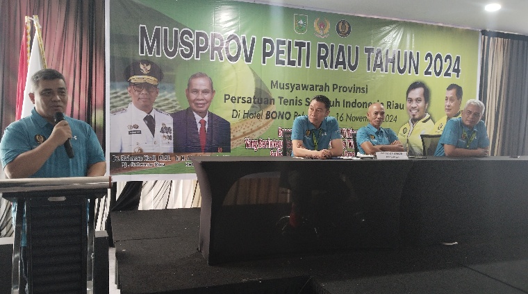 PEKANBARU – H. Muhammad Rafee terpilih secara aklamasi sebagai sebagai Ketua Pengurus Provinsi Persatuan Lawn Tenis Seluruh Indonesia (PELTI) Riau dalam Musyawarah Provinsi (Musprov), yang digelar di Hotel Bono Pekanbaru, Sabtu (16/11/2024).