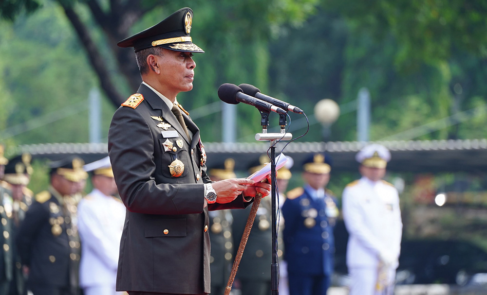 Jakarta – Markas Besar Tentara Nasional Indonesia (Mabes TNI) menggelar upacara peringatan Hari Pahlawan 2024 dengan tema “Teladani Pahlawanmu, Cintai Negerimu” di Lapangan Upacara Mabes TNI, Cilangkap, Jakarta Timur, pada Minggu (10/11/2024).
