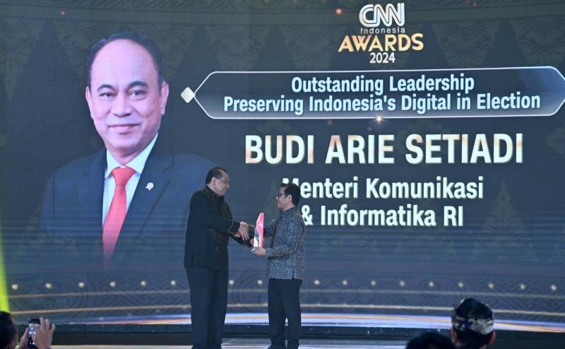 Saat menerima penghargaan Special Award: Outstanding Leadership Preserving Indonesia’s Digital on Election” CNN Indonesia Award 2024, Menkominfo Budi Arie diwakili Wamenkominfo Nezar Patria yang langsung hadir di Kuta, Badung, Bali. Dalam acara itu, hadir Jaksa Agung ST Burhanuddin dan Founder CNN Indonesia dan Chairman CT Corp Chairul Tanjung.