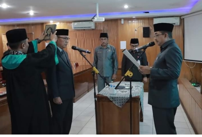Kualatungkal – Bupati Tanjung Jabung Barat, Drs. H Anwar Sadat MAg melaksanakan pelantikan dan pengambilan sumpah jabatan Penjabat Sekretaris Daerah Tanjung Jabung Barat H. Dahlan, SSos, M.M, Rabu, (15/05).