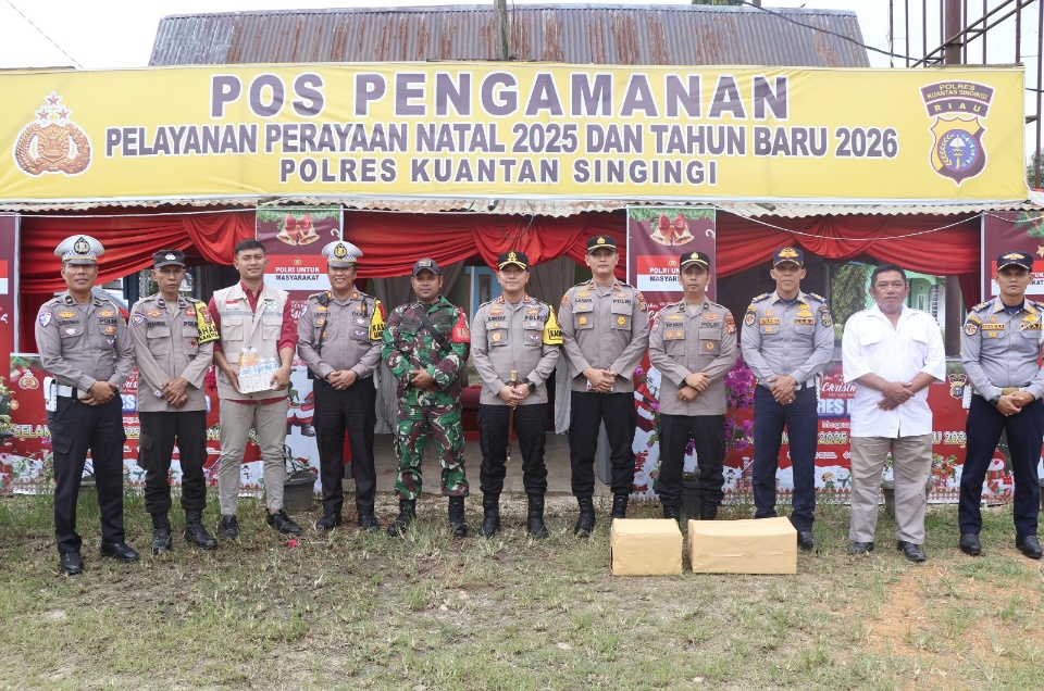Kapolres Kuantan Singingi AKBP R. Ricky Pratidiningrat, S.I.K., M.H., menyampaikan bahwa kehadiran Polri di tengah masyarakat pada momentum Natal dan Tahun Baru merupakan bentuk komitmen untuk memberikan rasa aman dan nyaman.