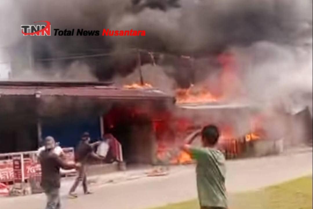 Indragiri Hilir, TNN– Kebakaran hebat melanda kawasan depan gudang Bulog, Kelurahan Tembilahan Hulu, Kabupaten Indragiri Hilir, Minggu (28/9/2025) pagi. Api dengan cepat melahap sejumlah bangunan hingga menimbulkan kepanikan warga sekitar.