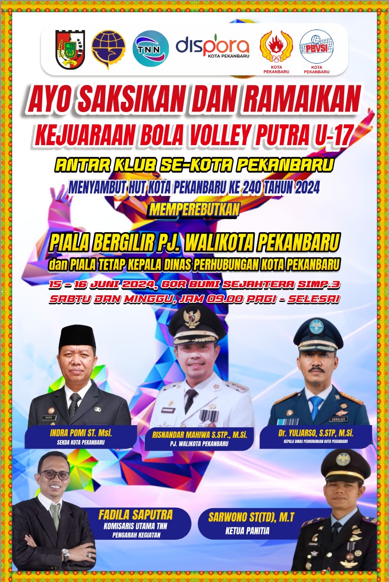 Menurut ketua Panitia Acara, Sarwono ST.(TD).MT mengatakan dalam rangka memeriahkan HUT Kota Pekanbaru ke 240 pihak nya mengadakan Kejuaraan Volley Putra U 17. Kegiatan ini memperebutkan piala bergilir Walikota Pekanbaru dan Piala tetap Kadis Perhubungan kota Pekanbaru.
