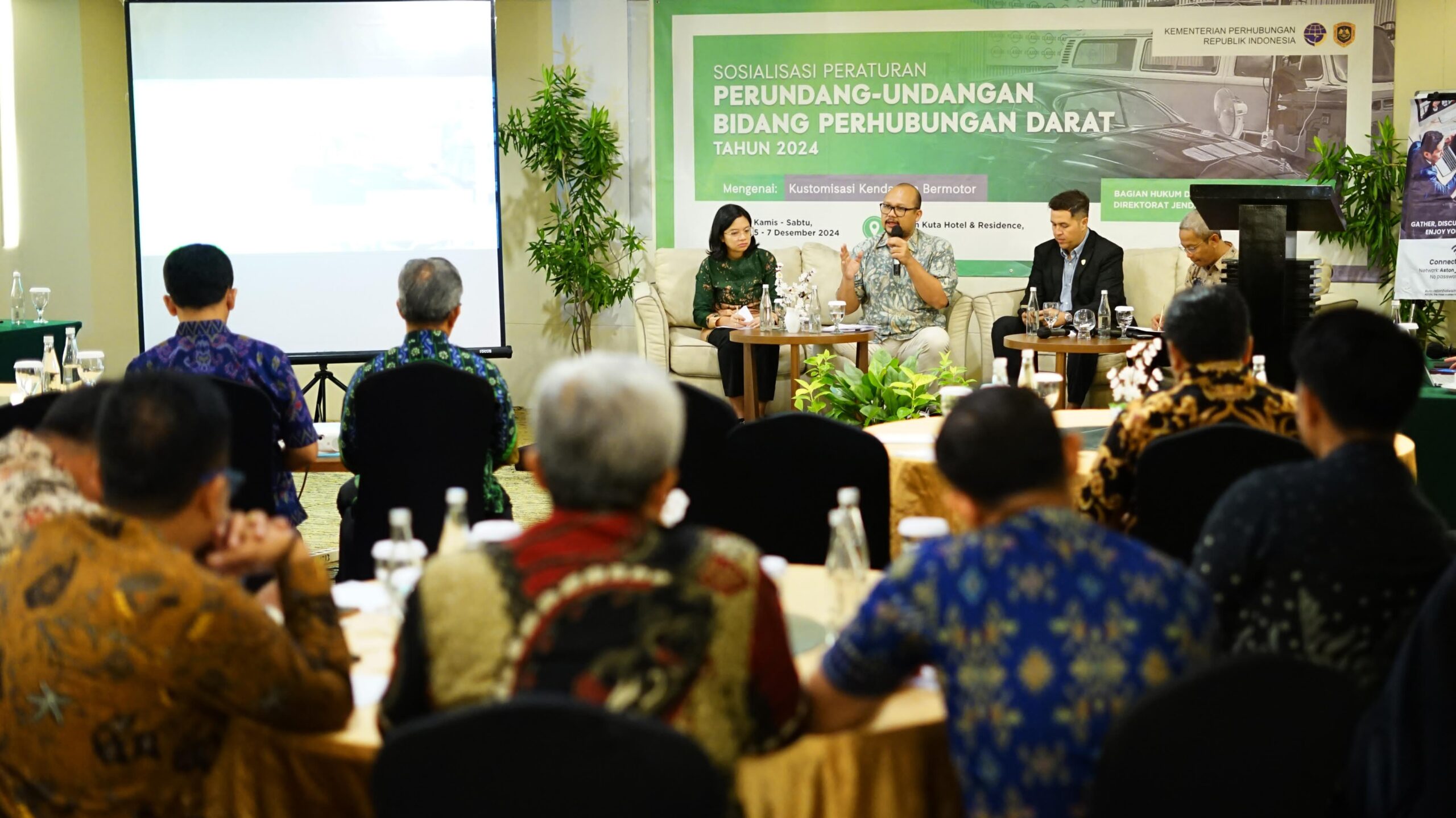 Jakarta – Direktorat Jenderal Perhubungan Darat Kementerian Perhubungan menggelar sosialisasi peraturan perundang-undangan bidang Perhubungan Darat tahun 2024 mengenai kustomisasi kendaraan bermotor dengan tujuan untuk mempertegas regulasi kendaraan kustomisasi di Indonesia yang berkeselamatan.