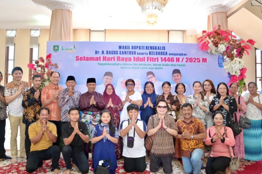 BENGKALIS, TNN – Momentum Hari lebaran umat muslim menjadi hari yang penuh kebahagian dan kehangatan dalam balutan silaturahmi persaudaraan. Begitulah yang turut dirasakan dikediaman Wakil Bupati Bengkalis Bagus Santoso pada lebaran pertama 1446 Hijriah, Senin, 31 Maret 2025.