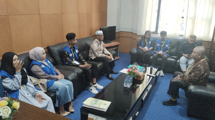 Didampingi mentor program MSIB, H. Rahman, SE dan pengawas program, Achizul Hendri, para mahasiwa bersilaturahmi ke Komisi I dan Komisi II DPRD Siak.