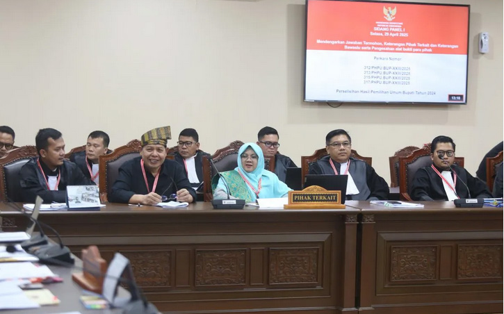 Ketua Majelis Hakim Suhartoyo menyatakan mengabulkan Eksepsi Termohon Komisi Pemilihan Umum Kabupaten Siak, Pihak Terkait I Pasangan Calon Bupati dan Wakil Bupati Siak nomor urut 2, Afni Z dan Syamsurizal, Pihak Terkait 2 Calon Bupati Siak nomor urut 1 Irving Kahar Arifin.