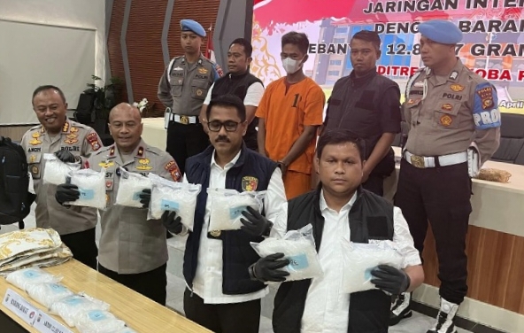 PEKANBARU, TNN – Tim Subdit II Ditresnarkoba Polda Riau berhasil mengungkap peredaran narkotika jaringan internasional dengan menyita 12 kilogram sabu-sabu senilai Rp12,8 miliar.