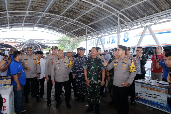 PEKANBARU, TNN – Kapolda Riau, Irjen Pol Dr. Herry Heryawan bersama Pejabat Utama (PJU) Polda Riau, TNI, serta Forkopimda Kota Dumai, meninjau arus mudik melalui Pelabuhan Pelindo Dumai pada (28/03/2025).