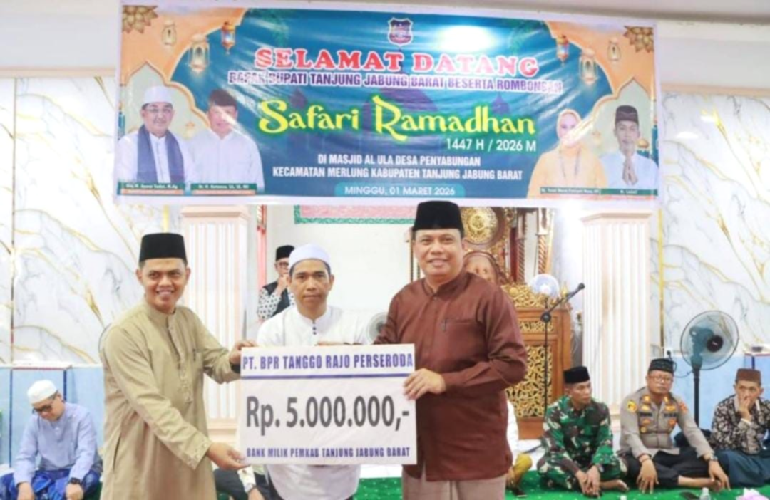 KUALATUNGKAL, TNN – Suasana hangat penuh kebersamaan terasa di Masjid Al-ULA, Desa Penyabungan, Kecamatan Merlung saat Pemerintah Kabupaten Tanjung Jabung Barat menggelar Safari Ramadan, Minggu (01/03). Kegiatan ini bukan sekadar kunjungan seremonial, tetapi menjadi momen penting penyampaian arah pembangunan daerah di tengah tantangan anggaran.
