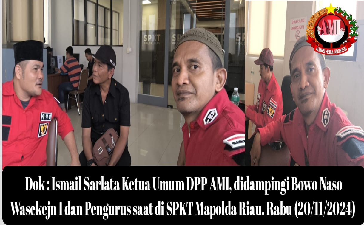 Pantauan awak media, korban saat mendatangi Polda Riau ternyata tidak hanya sendirian namun turut didampingi pengurus DPP AMI. Adapun pengurus DPP AMI yang mendampingi korban diantaranya Wakil Sekretaris Jendral I, Bowo Laia alias Anas, Ketua OKK Rahmatsyah, Wakil Ketua OKK Andre, Wakil Ketua OKK M. Jufri Daeng, Antoni dan Vivi selaku Wakil Ketua Bidang UMKM.