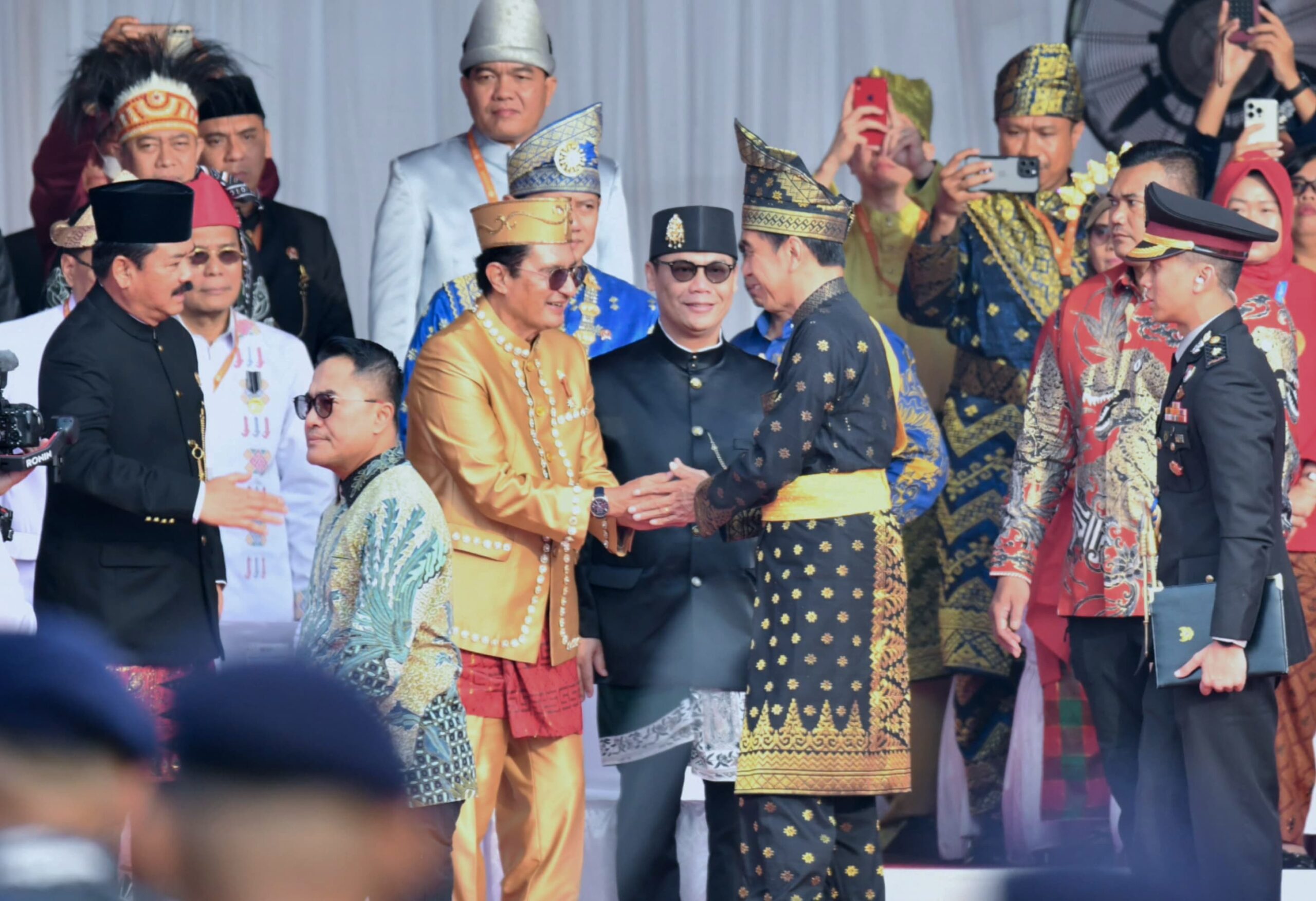 Fadel Muhammad yang saat upacara menggunakan pakaian takoa khas Gorontalo itu lebih lanjut mengatakan dirinya mengapresiasi langkah Presiden yang menggelorakan semangat kebangsaan dari daerah yang disebut Bumi Lancang Kuning itu.