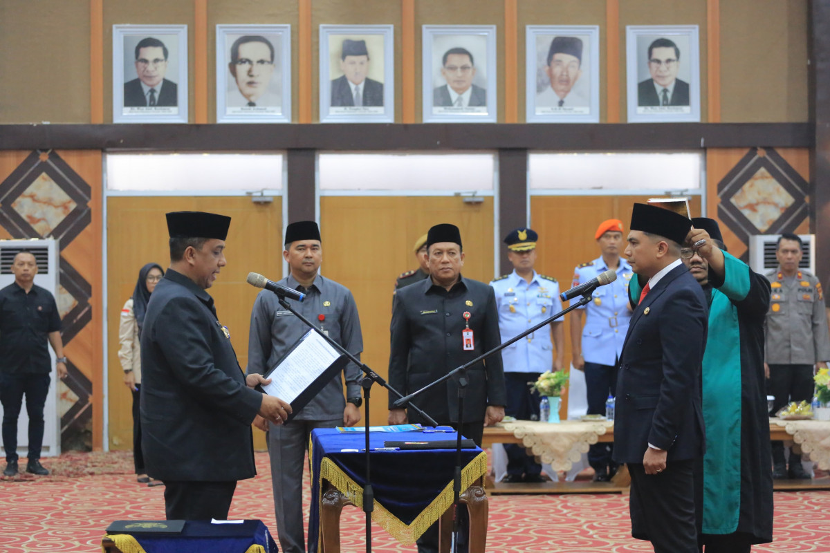 PEKANBARU – Penjabat (Pj) Walikota Pekanbaru Roni Rakhmat S.STP M.Si, melantik dan mengambil sumpah jabatan Zulhelmi Arifin S.STP M.Si sebagai Pj Sekretaris Daerah Kota (Sekdako), Kamis (13/2/2025).
