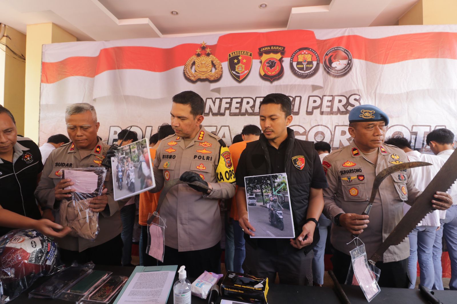 Setelah dilakukan pemeriksaan identitas pelaku yang membawa senjata tajam di antanyanya, Sdr. R I R alias I membawa Sajam jenis celurit milik Sdr. R S P, dan Sdr. R A alias R wa Celurit miliknya sendiri, Sdr. R S P membawa Sajam jenis Gosir (Gergaji Sisir) miliknya sendiri, Sdr. M S F A (17th) membawa Sajam jenis celurit miliknya sendiri, Sdr. M A F (16 Tahun 8 Bulan) membawa Stik Golf milik Sdr. D dan Sdr. M Z A (18th) membawa Gobang milik Sdr. D.