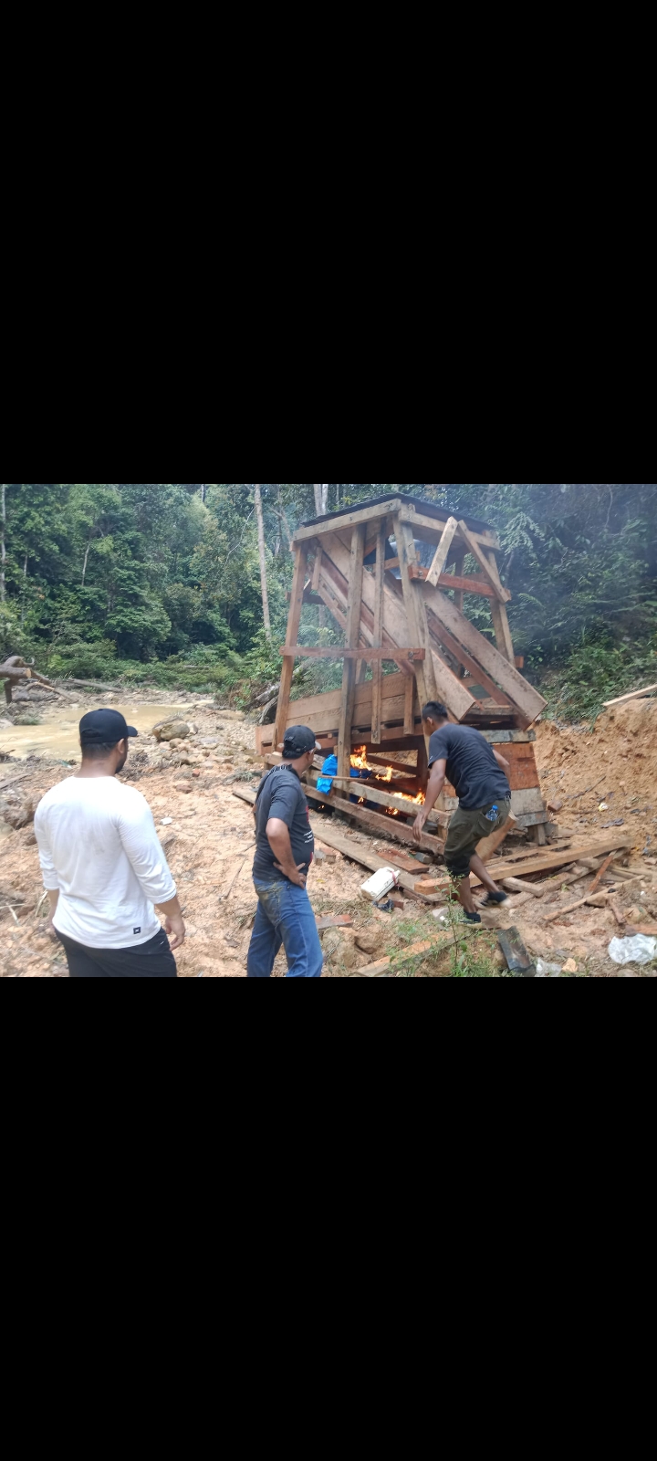 Langkah Penindakan Menanggapi temuan tersebut, petugas Unit Reskrim Polsek Kuantan Mudik langsung melakukan penindakan terhadap peralatan tambang ilegal. Box yang ditemukan di lokasi kemudian dihancurkan dan dibakar agar tidak dapat digunakan kembali dalam aktivitas penambangan emas ilegal. Tindakan ini diambil sebagai langkah preventif untuk menghentikan aktivitas ilegal yang berpotensi merusak kawasan hutan lindung Bukit Betabuh.