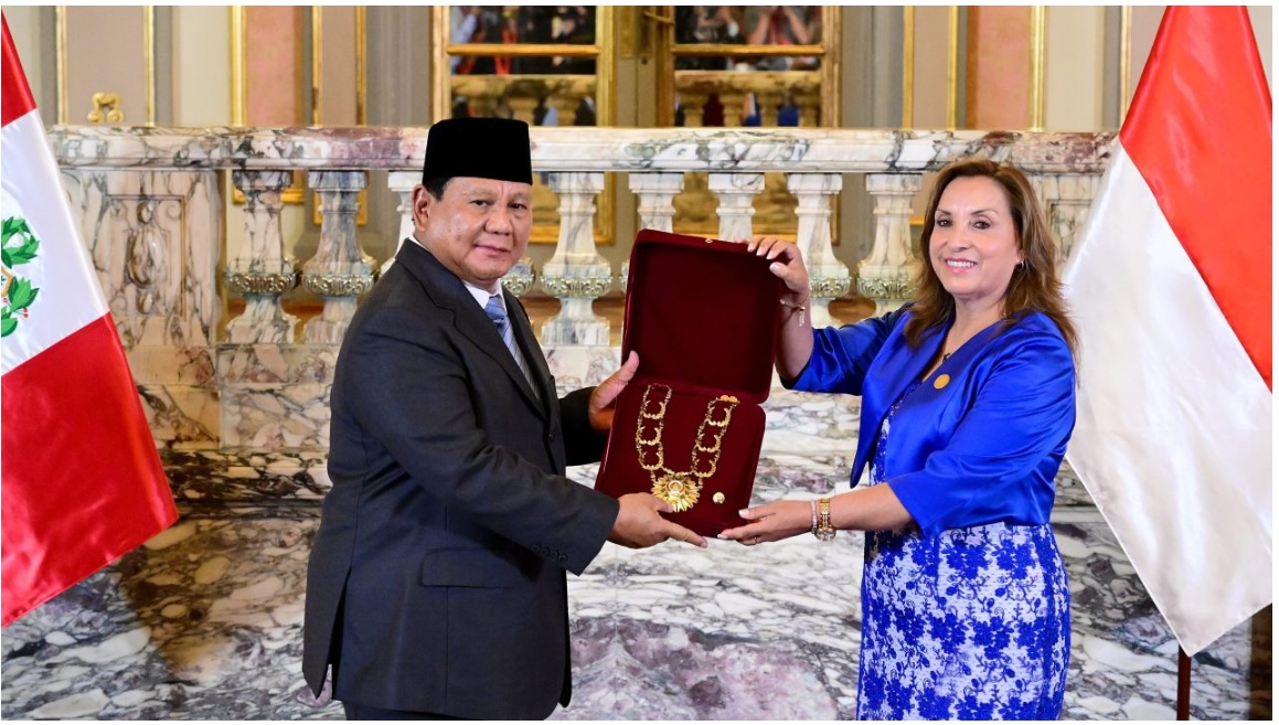 Lima – Dalam kunjungan kenegaraannya ke Peru, Presiden Republik Indonesia (RI) Prabowo Subianto dianugerahi tanda kehormatan tertinggi “Grand Cross of the Order of the Sun of Peru” oleh Pemerintah Peru.