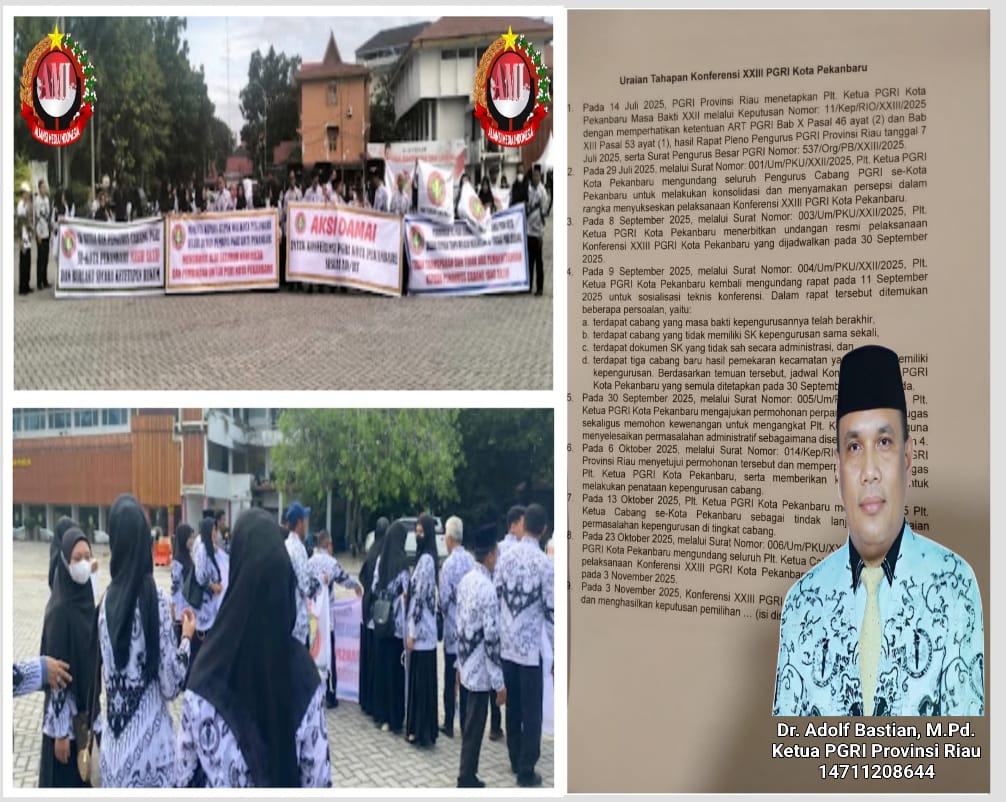 PEKANBARU, TNN — Ketua PGRI Provinsi Riau, Dr Adolf Bastian menilai tuntutan ratusan guru dalam aksi dari 11 cabang PGRI Kota Pekanbaru pada Minggu (23/11/2025) di depan Mall Pelayanan Publik (MPP) Pekanbaru, tidak berdasar.
