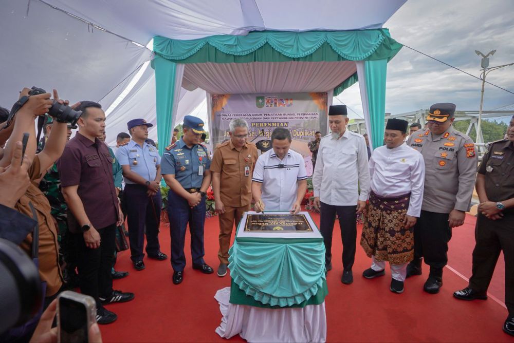 Gubernur Abdul Wahid menyampaikan jembatan merupakan infrastruktur penting yang berperan dalam menghubungkan dua daerah. Ia juga menyoroti makna jenama “Sungai Masjid”.