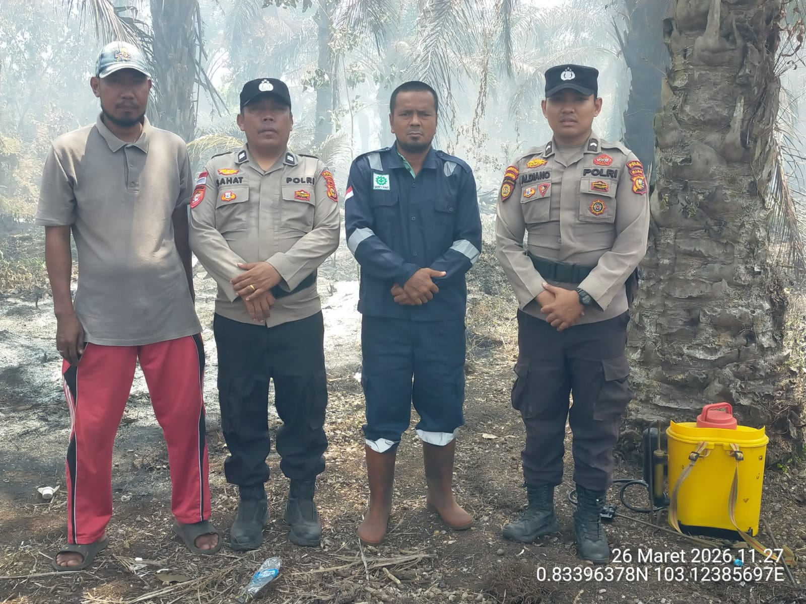 Tim yang terdiri dari dua personel Polri, Aiptu Sahat MPT dan Bripda A. Siregar, serta masyarakat peduli api (MPA) kemudian bergerak menuju titik koordinat yang terdeteksi.