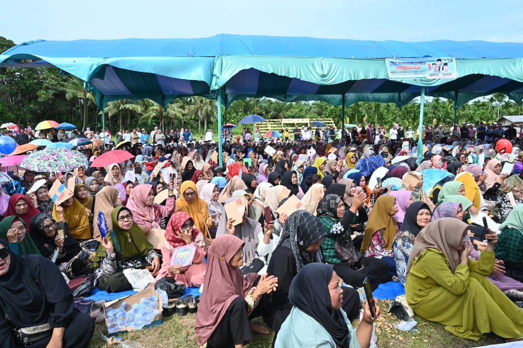 Tampak ribuan masyarakat menguasai lapangan meskipun cuaca terik. Selain itu, hadir pula calon wakil bupati (cawabup) Inhil nomor dua sekaligus juru kampanye, Dani Nursalam, dan calon bupati (cabup) nomor tiga, Mimi lutmila.