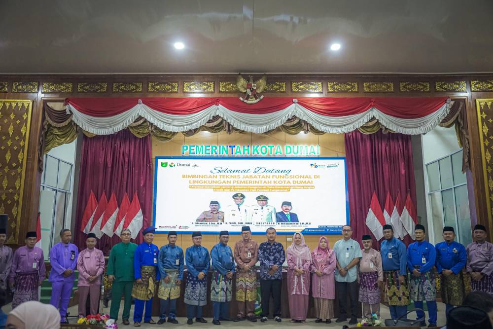 DUMAI, TNN – Sekda Kota Dumai H. Indra Gunawan, S.IP, M.Si menghadiri sekaligus membuka Bimbingan Teknis Jabatan Fungsional di Lingkungan Pemerintah Kota Dumai yang bertempat di Gedung Sri Bunga Tanjung, Jumat (10/10/2025).