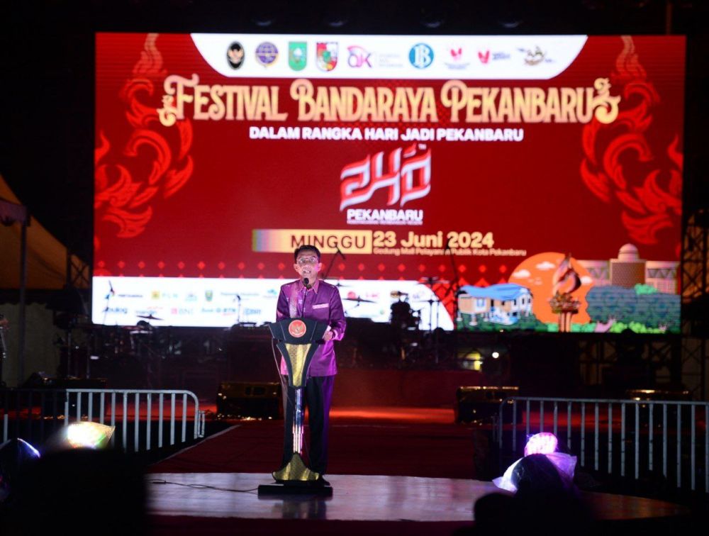 PEKANBARU – Pj Gubernur Riau yang diwakili oleh Pj Sekda Riau, Indra menghadiri malam puncak Festival Bandaraya Pekanbaru 2024 dalam rangka HUT Kota Pekanbaru ke-240. Acara ini dilaksanakan di halaman Mal Pelayanan Publik Kota Pekanbaru, Minggu (23/6/2024) malam.
