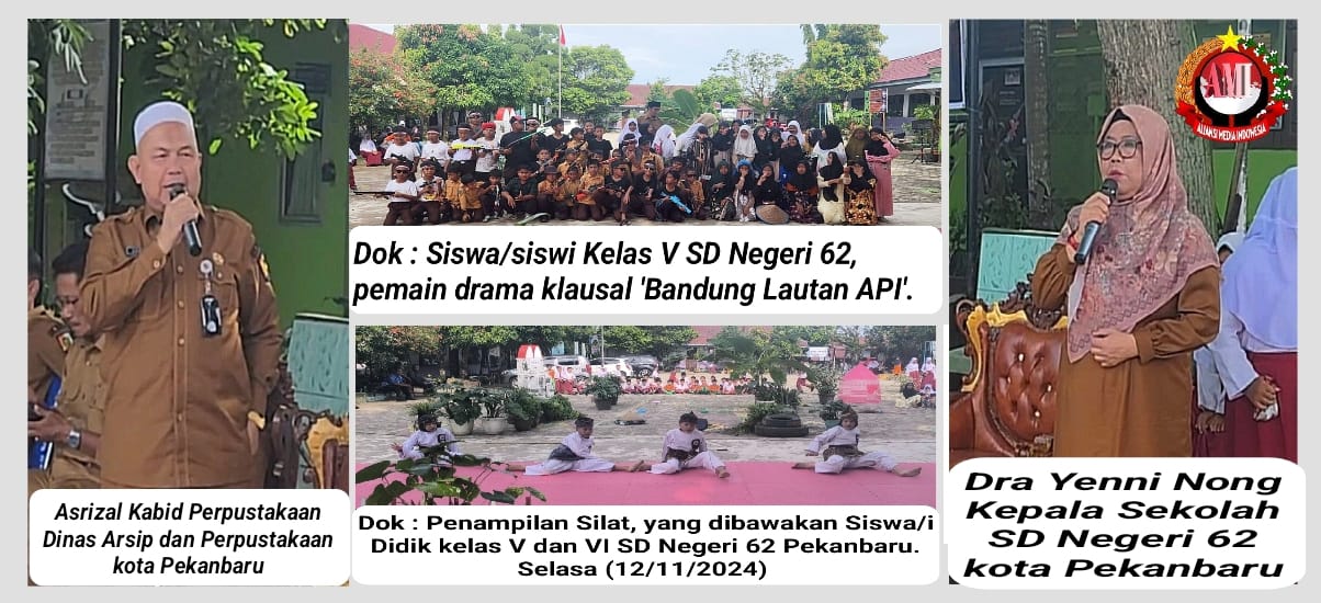 Acara di tutup dengan Penampilan Drama Klausal memukau yang dibawakan oleh siswa didik kelas VI, bertemakan ‘ Bandung Lautan Api’, serta memantau perpustakaan oleh Asrizal Kabid Perpustakaan Dinas Arsip dan Perpustakaan kota Pekanbaru yang turut didampingi oleh Dra Yenni Nong Kepala Sekolah bersama kepala sekolah yang turut hadir dalam undangan pelaksanaan P5 yang ditaja oleh Kepsek SD Negeri 62…. Bersambung (Team)