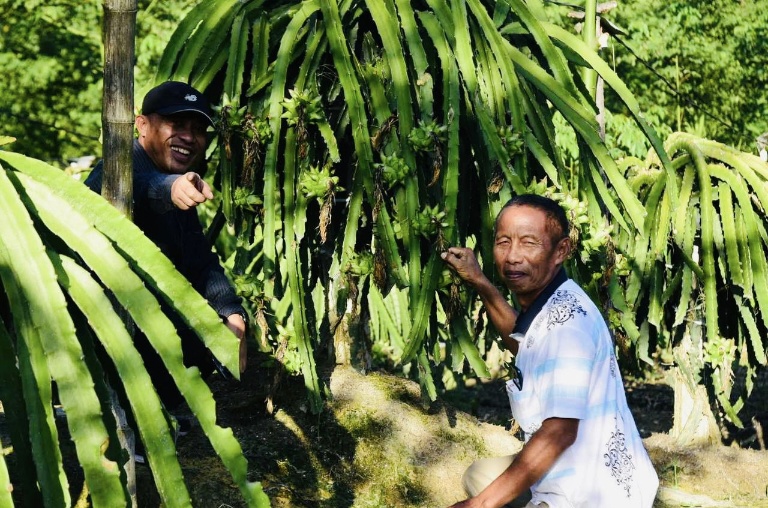 Bagus Santoso mendorong keberhasilan Pakde Sukir akan menjadi Branding Desa Harapan Baru menjadi Kampung Buah Naga.