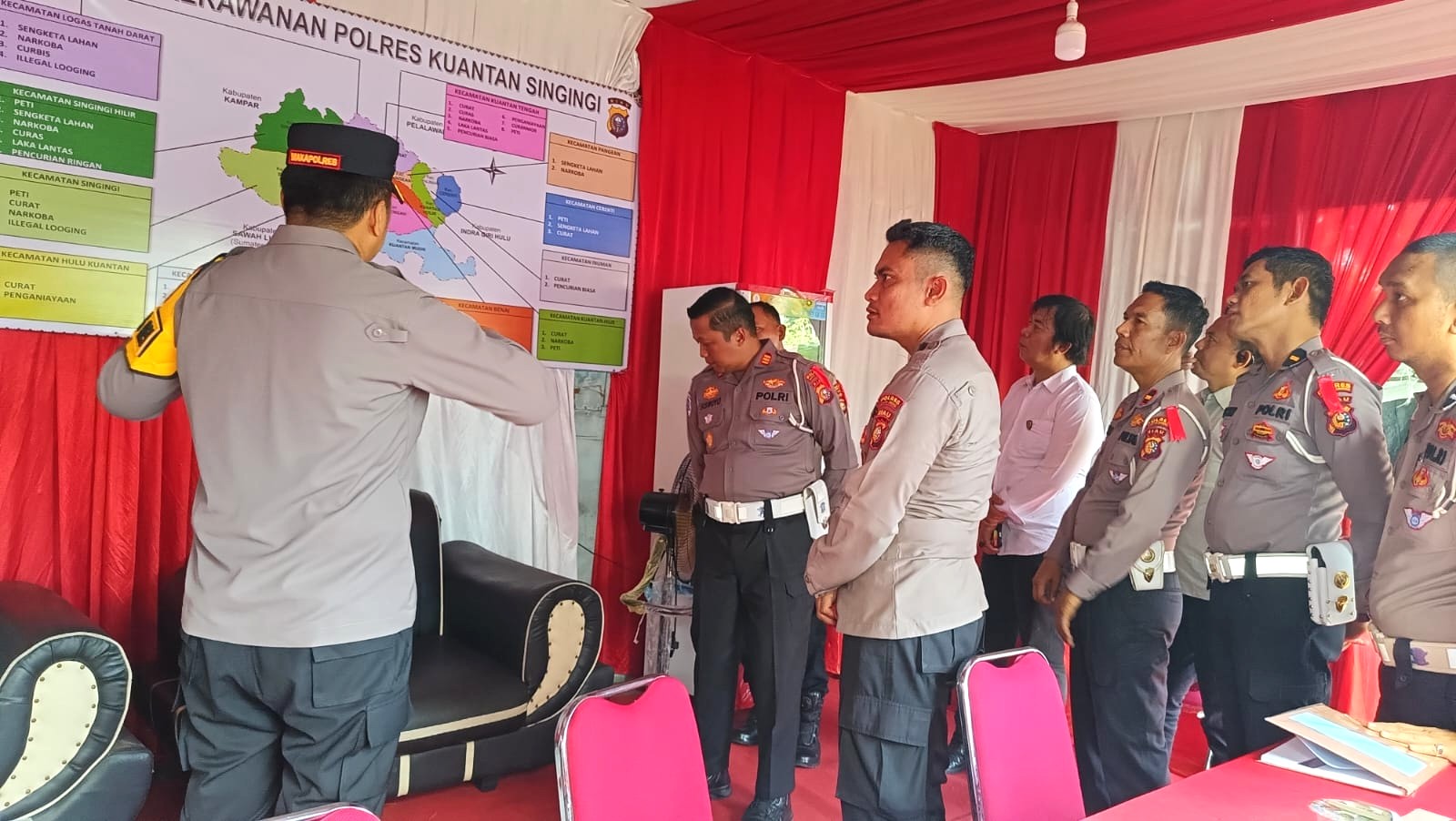 Pengecekan dilakukan terhadap kesiapan personel, kelengkapan administrasi, serta sarana dan prasarana pendukung di Pos Yan Tugu Cerano sebagai salah satu titik pelayanan masyarakat dalam Operasi Lilin LK 2025 di wilayah hukum Polsek Kuantan Tengah.