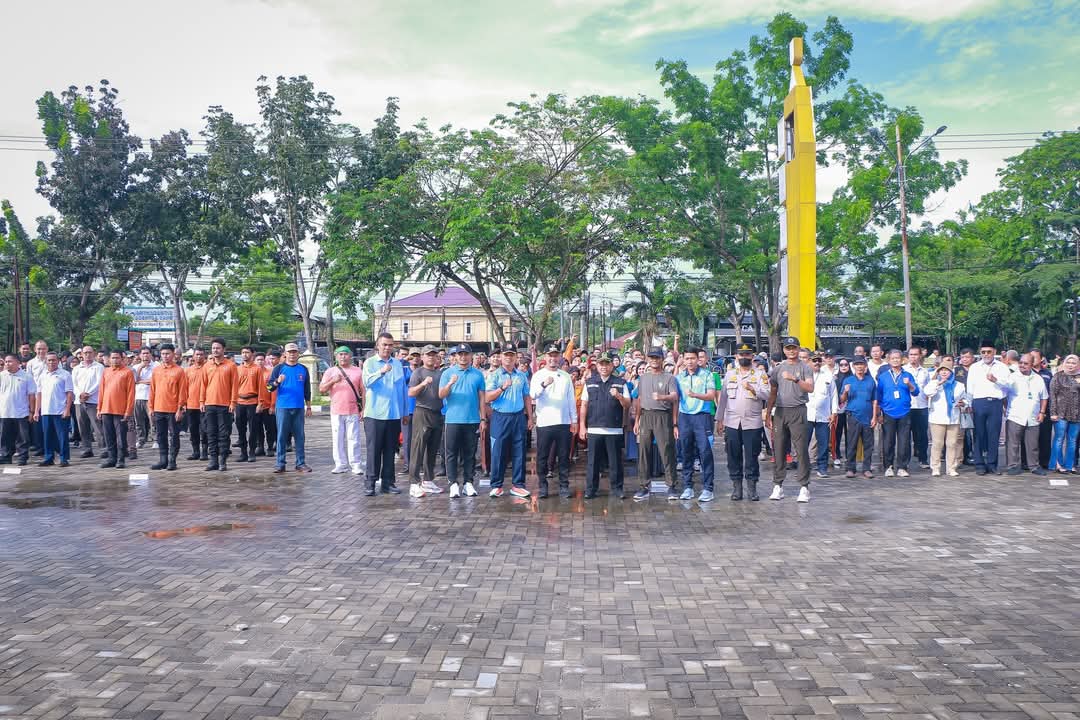 Apel bersama sekaligus aksi bersih sampah plastik dalam rangka memperingati Hari Lingkungan Hidup se Dunia yang dilaksanakan di halaman Gedung Dekranasda Jalan Arifin Ahmad, Kamis (5/6/2025) pagi, dipimpin langsung Walikota (Wako) Pekanbaru, H Agung Nugroho.