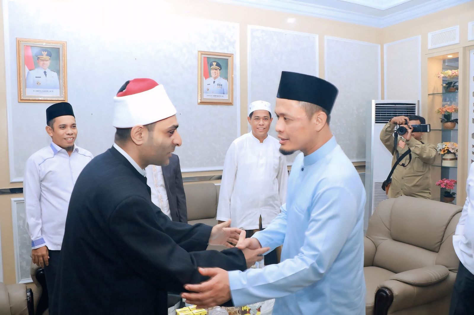 PEKANBARU – Wali Kota Pekanbaru Agung Nugroho bersama Wakil Wali Kota Markarius Anwar menerima kunjungan silaturahmi Syekh Mohamed Mahmoud Salama Mohamed di rumah dinas, Selasa (18/3/2025). Kunjungan ulama asal Al-Azhar, Kairo, Mesir ini bertujuan memberikan pemahaman keagamaan dengan tema “Persaudaraan, Pemberdayaan Disabilitas, dan Merawat Alam.”