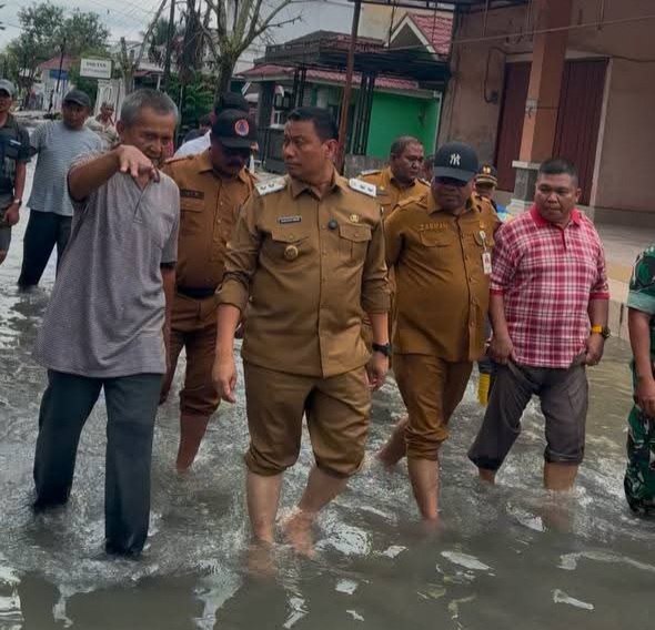 Pekanbaru, TNN – Wakil Wali Kota (Wawako) Pekanbaru Markarius Anwar bersama Kepala Pelaksana (Kalaksa) Badan Penanggulangan Bencana Daerah (BPBD) Zarman Candra serta jajaran terkait, melakukan peninjauan ke lokasi-lokasi terdampak banjir. Banjir terjadi akibat hujan deras yang melanda Kota Pekanbaru sejak Senin (24/2/2025) dini hari.